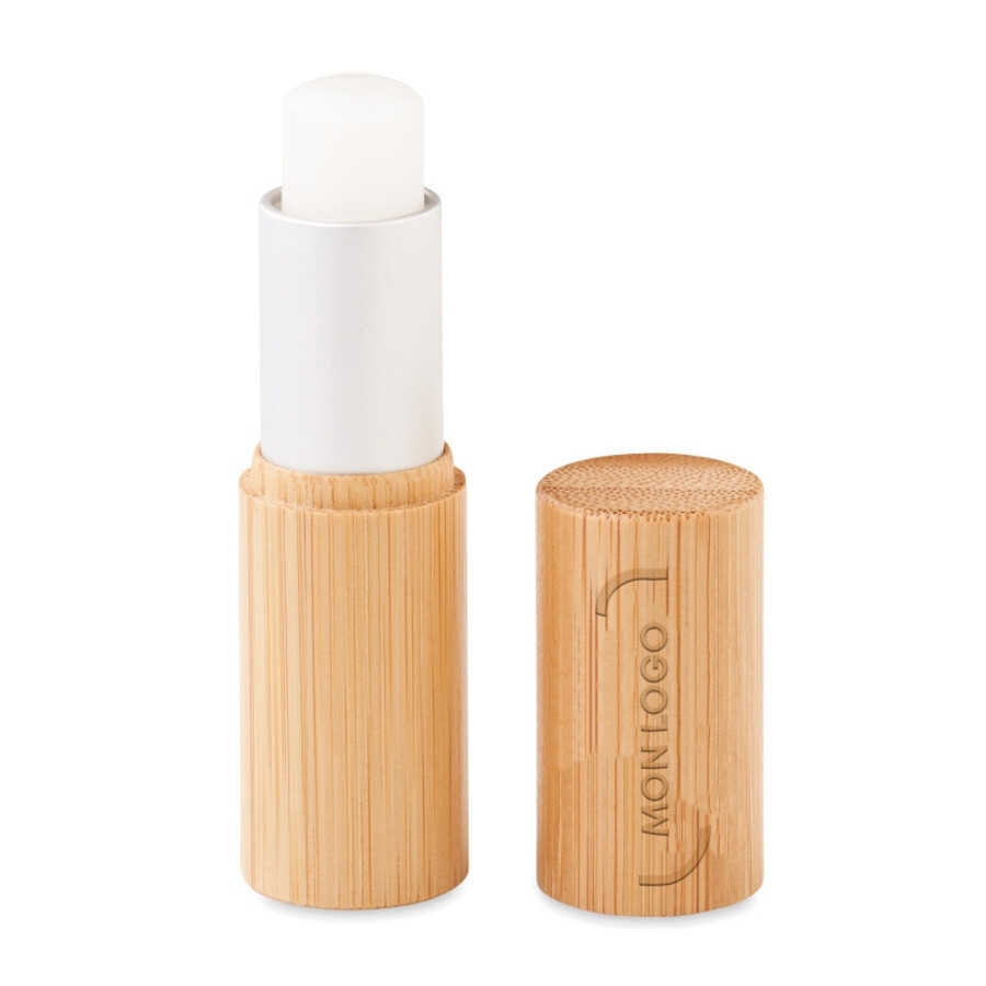 Baume à lèvres naturel dans un étui tube en bambou. SPF 10. Testé dermatologiquement. Saveur: Vanille. Le bambou est un produit naturel, et présente de légères variations de couleur, de décoration et de tailles.