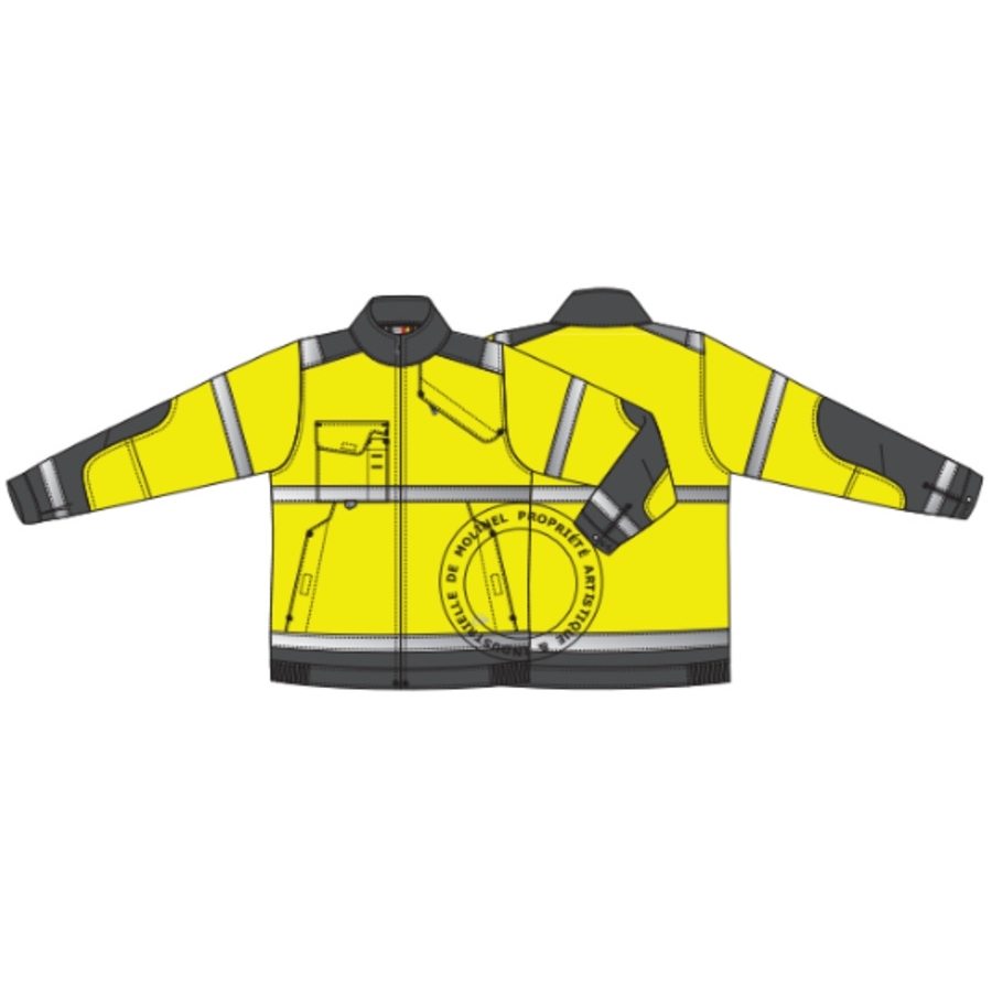 2 Bandes rétroréfléchissantes grises 50mm de large positionnées horizontalement sur corps et manches