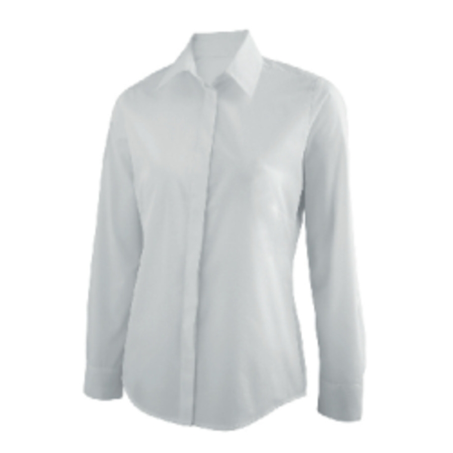 Col avec pied de col boutonné Pinces poitrine Découpes de cintrage dans le dos Boutonnage sous patte.