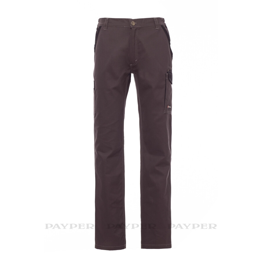 Avec élastiques latéraux et passants à la taille, fermeture par zip et bouton en métal, deux poches de coupe classique sur le devant et une poche avec zip, une poche latérale LOCK SYSTEM, une double poche porte-mètre côté gauche, deux poches arrière une ouverte et une avec rabat et velcro. Inserts et surpiqûres en contraste, bandes réfléchissantes sur poche arrière, triple couture intérieur jambes.