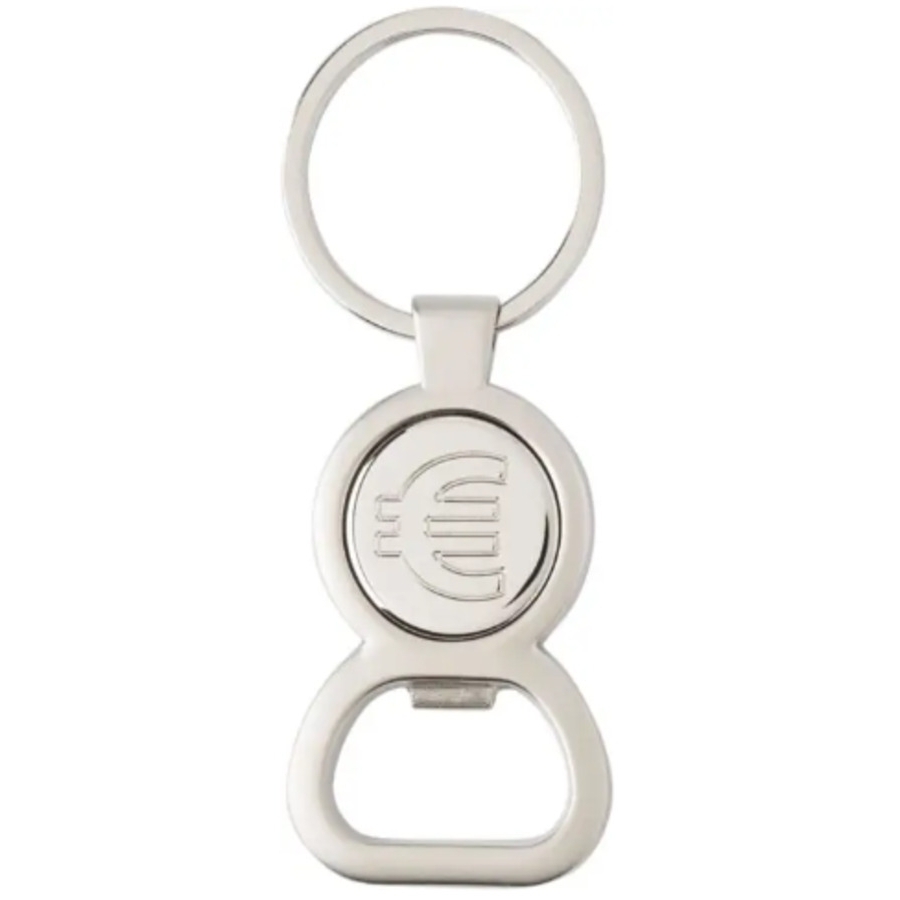 Porte-clés en métal avec décapsuleur contenant un jeton de chariot dans une boîte cadeau (format 0,50 €).