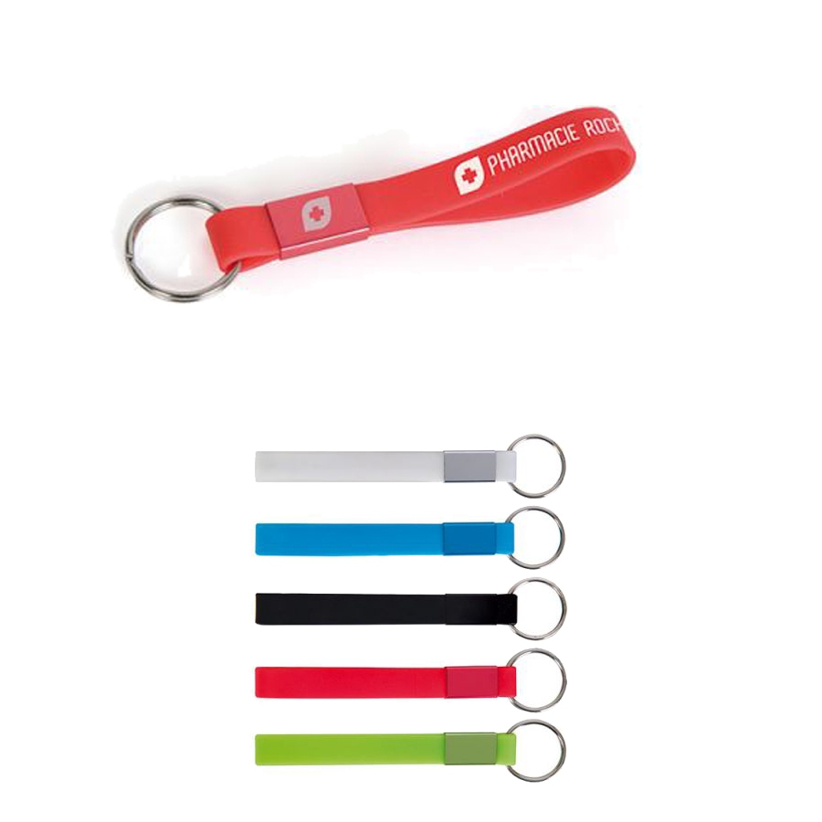 Porte-clés Lanyard silicone et plaque métal.