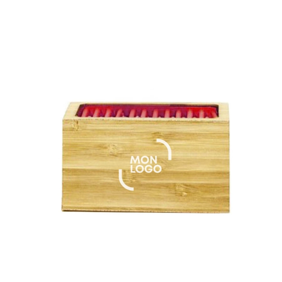 Bambou et silicone. Face aimantée pour trombones. S'utilise à la verticale ou à l'horizontale. Livraison en boîte individuelle.