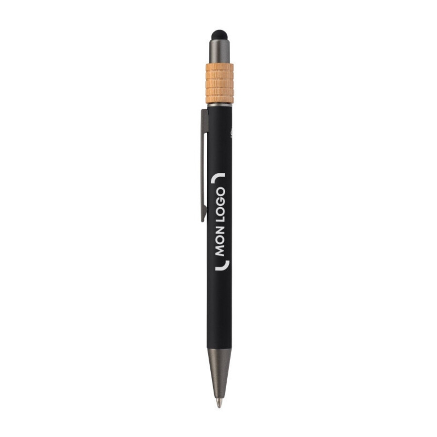 Breveté. Enregistrement international n° DM/24673. Découvrez le Reborn Spinner Stylo en aluminium recyclé avec stylet - un choix élégant pour vos besoins d'écriture quotidiens. Avec son design épuré, le stylo présente un barillet en aluminium recyclé avec une finition en caoutchouc fabriqué à partir de matériau RABS robuste. Le poussoir est fabriqué à partir d'un composant en bambou provenant de forêts gérées de manière responsable, et tourne en douceur sur des roulements à billes. Il inclut un stylet noir pour écran tactile et une pince en acier inoxydable couleur gunmetal. Pour compléter sa fonctionnalité, le stylo utilise une recharge à bille de 1,0 mm avec une cartouche d'encre de style Parker à haute capacité offrant une écriture de 1 800 mètres. Le barillet est orné d'un symbole gravé au laser indiquant ses matériaux recyclés, positionné en face de la pince.